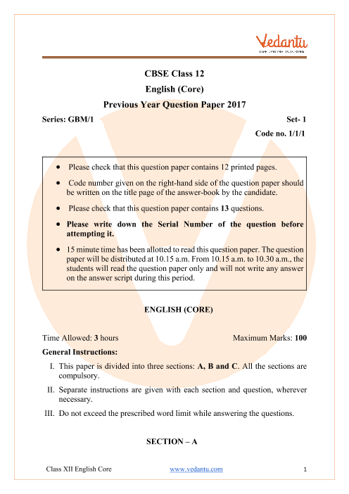 Cbse Class 12 English Communicative Question Paper 2017 Free Pdf