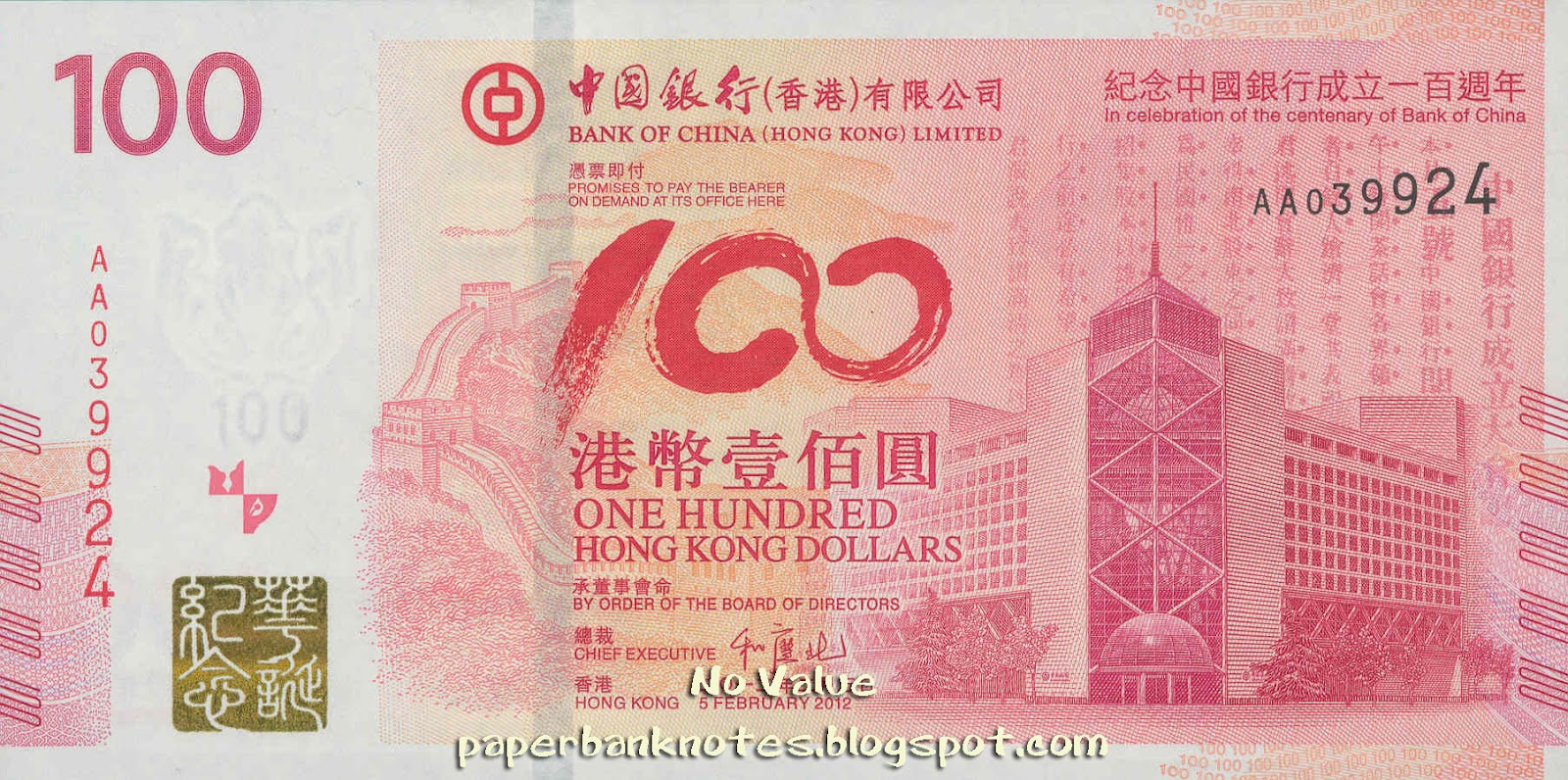 East Asia Paperbanknotes Hong Kong Bank Of China Hong Kong