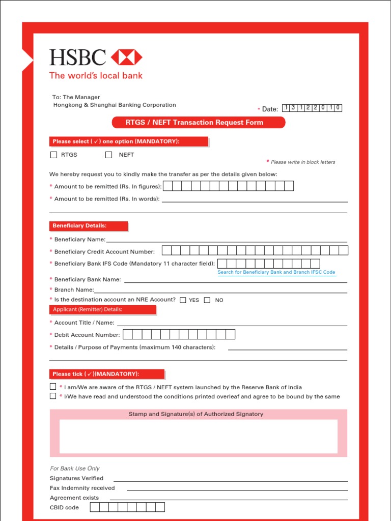 Rtgs Neft Request Form Reserve Bank Of India Banks Free 30