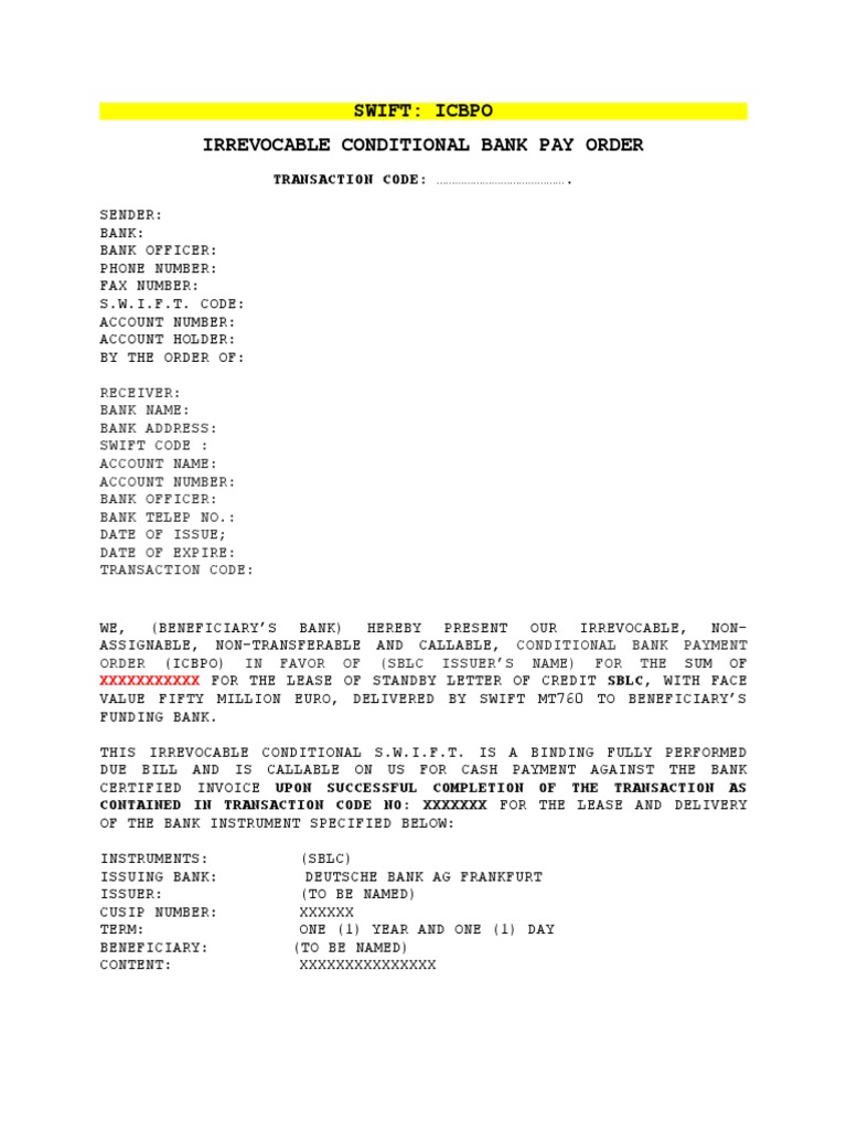 Icbpo Verbiage Docx Payments Letter Of Credit