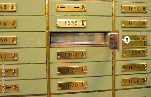Bank Tresor Safe Deposit Boxes With Numbers One Box Are Open With